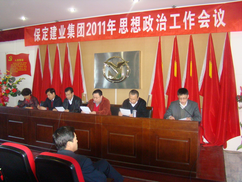2011年3月8日,保定建業(yè)集團(tuán)有限公司2011年思想政治工作會議在莊嚴(yán)的國歌聲中拉開了序幕,會議由黨委辦公室主任馬亞軍主持,集團(tuán)各公司黨、政、工、團(tuán)、婦、武裝、保衛(wèi)負(fù)責(zé)人參加會議。